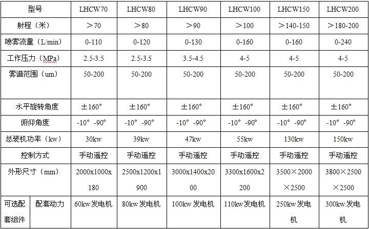 LHW-60型固定式除塵噴霧機操作靈活,使用安全可靠,遙控和人工控制操作,可隨意控制調節水平旋轉噴霧角度;耗水量相比其它抑塵噴灑設備可節約70%~80%(噴槍、灑水機車),且水霧覆蓋粉塵面積遠遠大于其它抑塵噴灑設備。