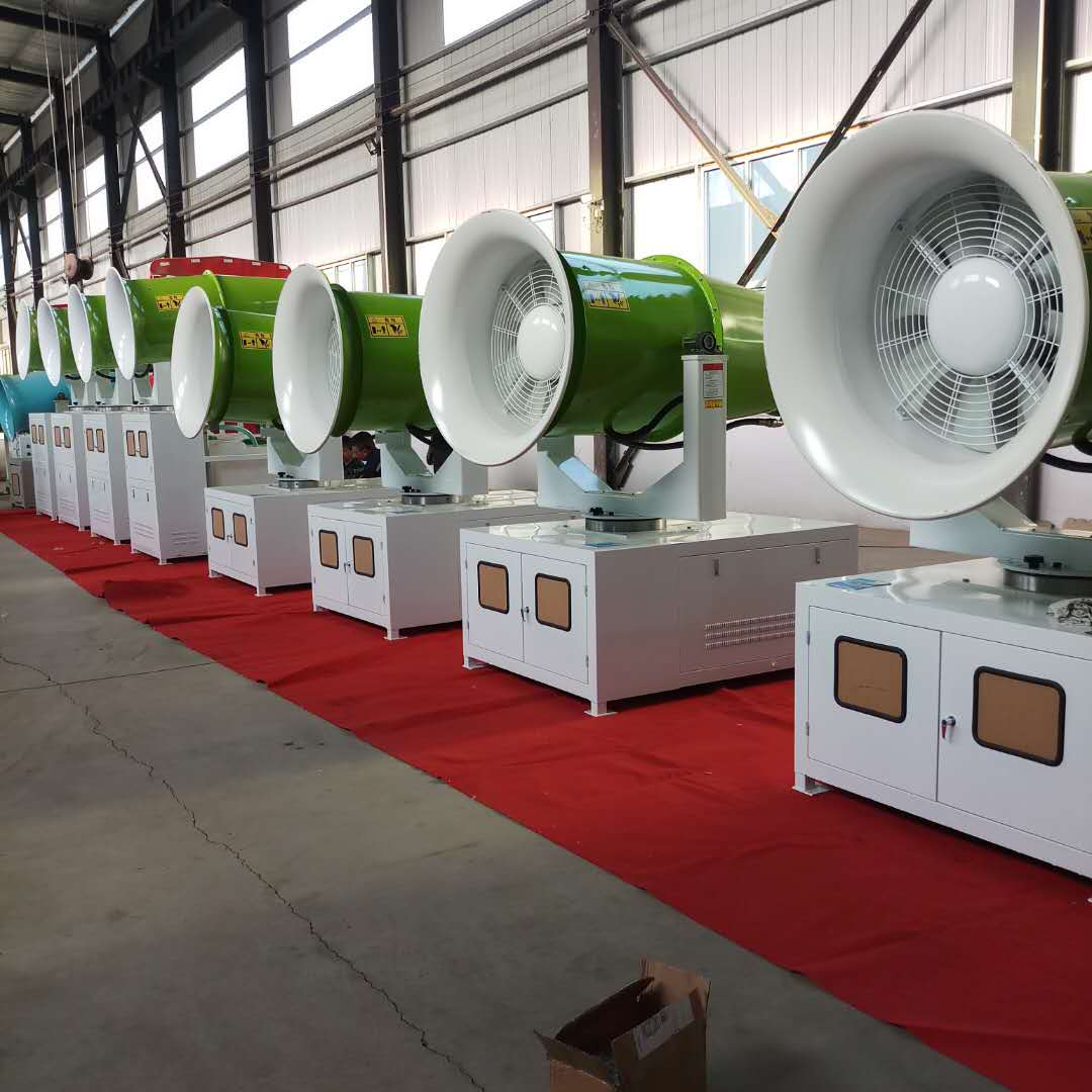 風送式除塵霧炮機主要作用是除塵降塵,眾所周知揚塵是有細小的微粒經過風力的作用漂浮在空中形成的,一般的灑水車噴出的水成霧化狀很好的與揚塵結合使其比重增加,射程也沒有霧炮機射程遠,使用范圍也直接接受到限制,而霧炮機噴射出的水經過霧化噴頭噴射出的水成霧化狀很好的與揚塵結合使其比重增加在空中下降,再者霧炮機經過高壓水泵和風力的作用射程也可以達到30到100米射程,范圍廣 的節約了用戶的使用成本。