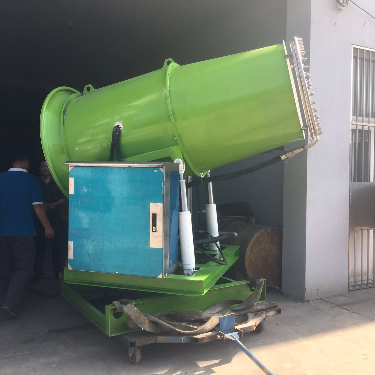 霧炮機(jī)射程遠(yuǎn),覆蓋面積大,它既可以用自來(lái)水也可以使用循環(huán)用水(中水),對(duì)200微米級(jí)以下粉塵具有完全抑制能力,抑沉后滿足 對(duì)粉塵排放的標(biāo)準(zhǔn)。這種濕法抑沉主要是對(duì)料堆表面灑水增濕,利用水霧控制粉塵的擴(kuò)散,其作用是增加粉塵顆粒對(duì)的粘滯性和重量來(lái)防止起沉的。