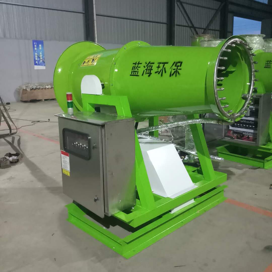 風送式除塵噴霧機采用 的噴霧重力降塵技術,通過高壓將溶液霧化成與粉塵大小相當的顆粒,在風機的作用下,將霧定向拋射到指定位置,在塵源處及其上方或者周圍進行噴霧覆蓋。然后粉塵顆粒與水霧充分的融合,逐漸凝結成顆粒團,在自身的重力作用下快速沉降到地面,從而達到降塵的目的。1、功力強、射程遠、覆蓋范圍廣。可實現定點定量噴霧,尤其適合礦山開采、粉碎、存儲等大范圍噴霧降塵。