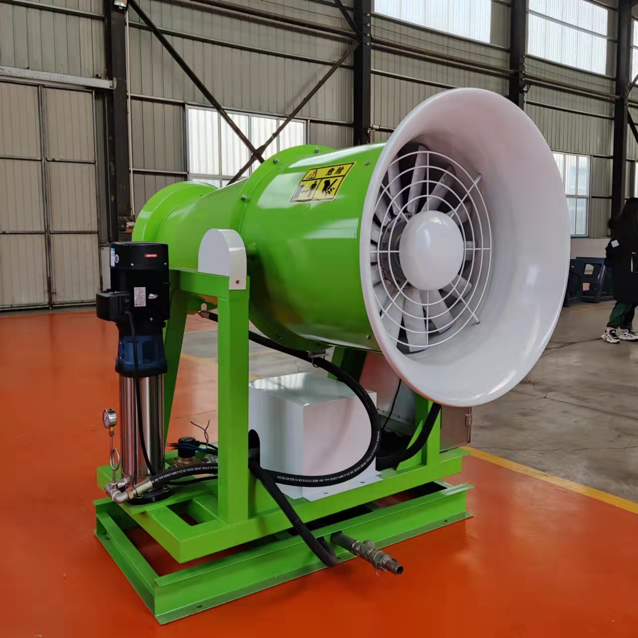 風送式除塵噴霧機是一種經過特殊設計,能夠實現將均勻連續混合物(水、空氣、添加劑)噴射超遠距離的專利產品,成霧水滴尺寸均可控,噴射有指向性。
